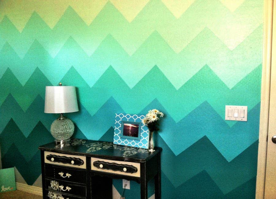 Если вы сомневаетесь в своих художественных способностях, всегда можно покрасить готовую стену через трафарет.
