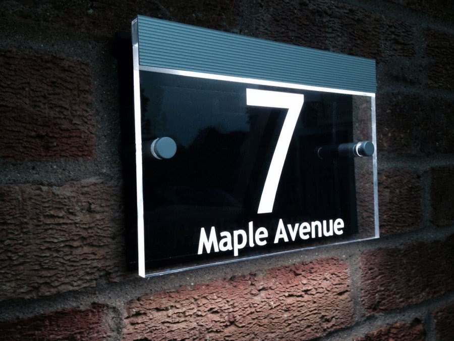 Адресный указатель из оргстекла смотрится весьма необычно, а если его сделать с подсветкой, то еще и стильно. Из данного материала можно сделать таблички круглой, овальной, многогранной или стандартной прямоугольной формы.