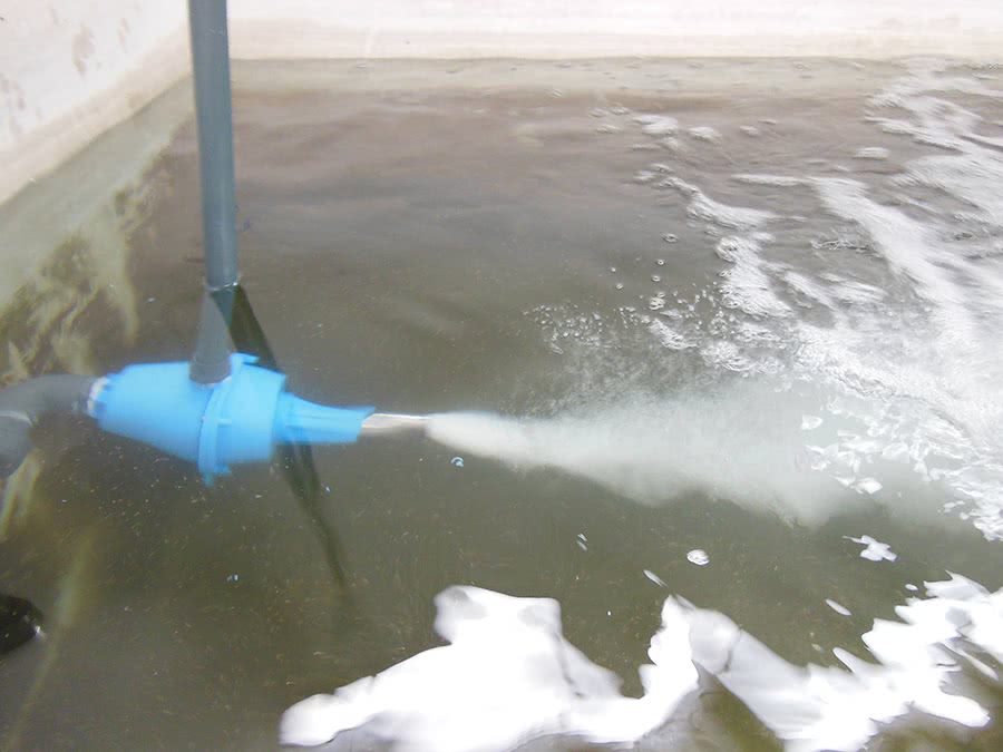 - Эжекторные. Установки снабжены лопастями, которые приводит к движению встроенный двигатель. Они бьют по воде, она перемешивается, образуются воздушные пузыри.