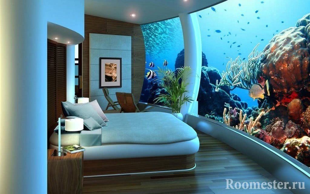 Подводное царство отдельно взятой квартиры имитирует урбанистическую атмосферу современного города или природные горные ландшафты, декорации в духе японского минимализма. Под водой располагают целый античный город с древними развалинами, скульптурными группами, затонувшими кораблями.