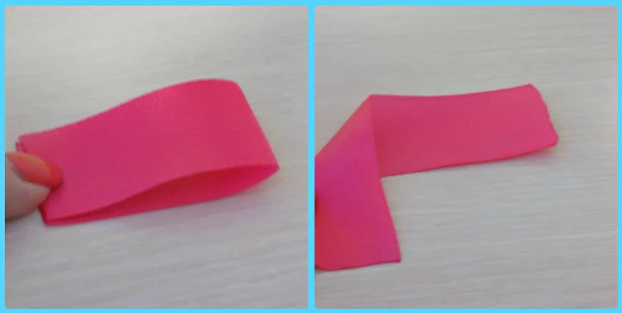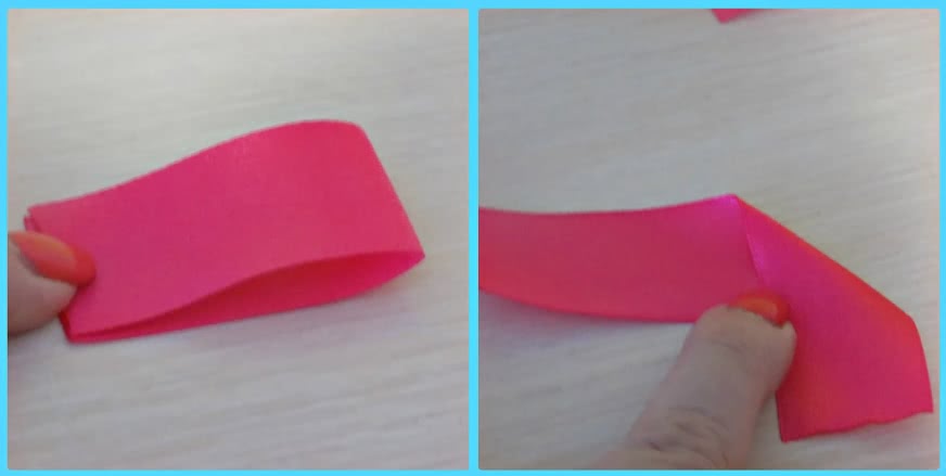 Загнутый кончик приклеиваем. Так же складываем и второй кусочек ленты.