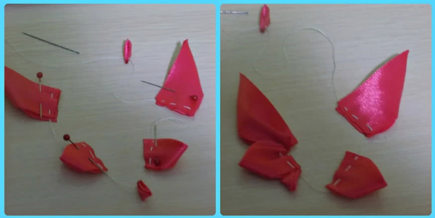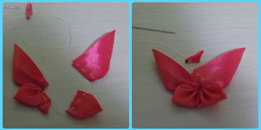Далее собираем два других крылышка, воспользовавшись мастер-классом «Круглый лепесток канзаши»