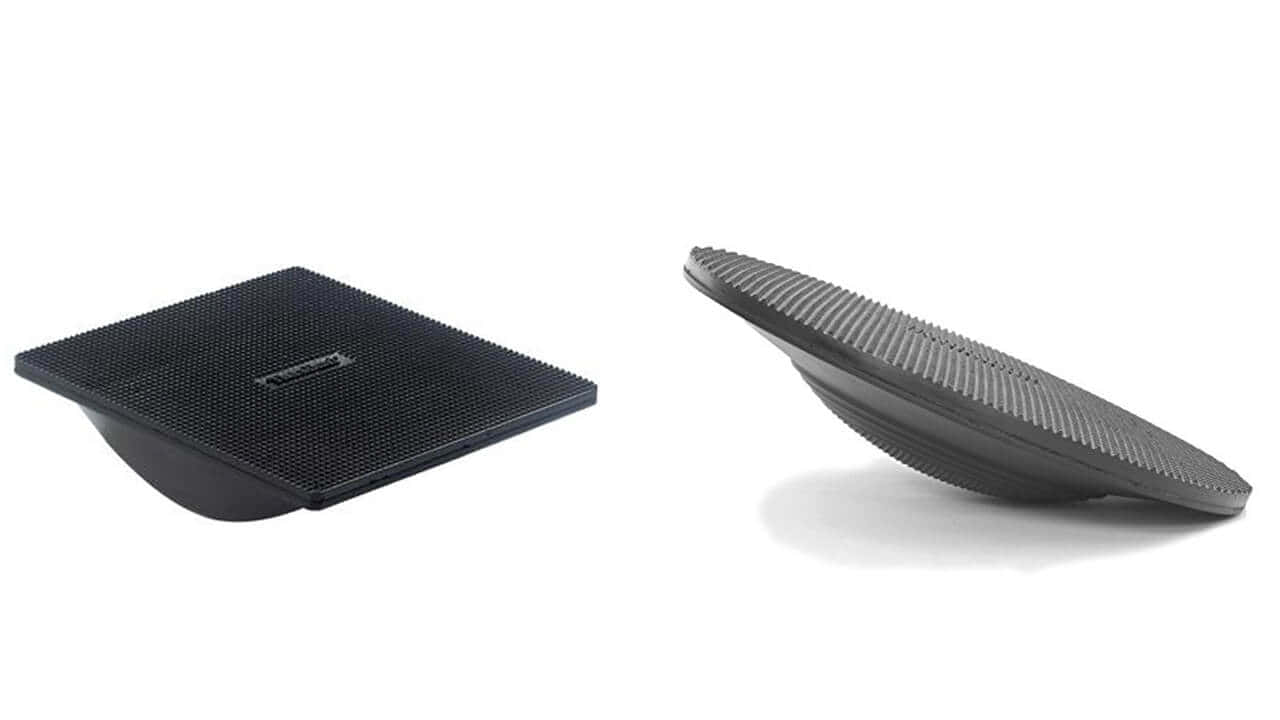 Wobble Boards. Доска сферической формы с точкой опоры в центре, которая обеспечивает движение на все 360 градусов. Отличный вариант для выполнения силовых упражнений, таких как приседания или отжимания. Присутствует возможность изменения высоты за счет съемной опоры.
