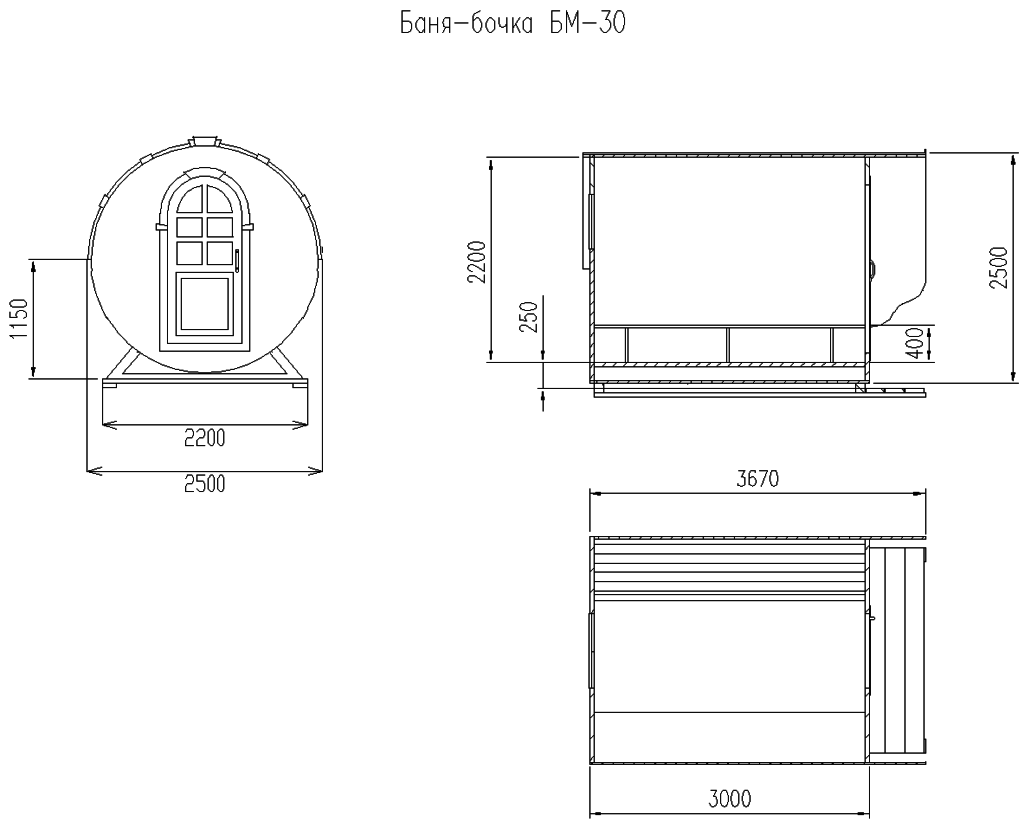 Диаметр бани бочки определяется ее высотой, которая обычно равна 2,2 м. Именно при таком размере потолка человек чувствует себя комфортно. Чтобы свободно перемещаться внутри «термоса», достаточно диаметра 2200–2500 мм. Больший размер значительно увеличивает вес конструкции и расход материалов.