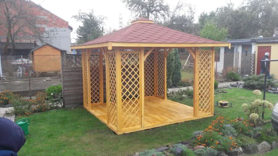 Когда каркас готов, строительство дачной беседки своими руками можно считать практически законченным.