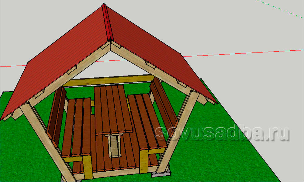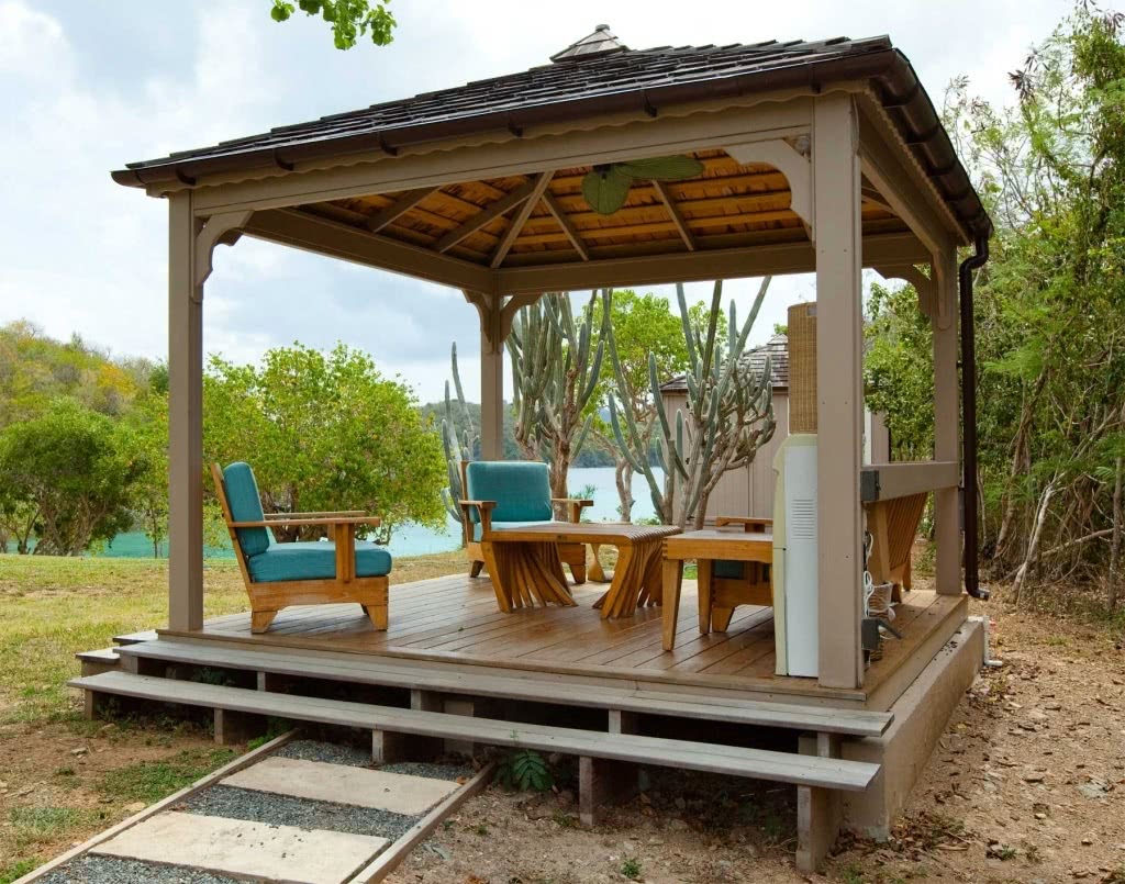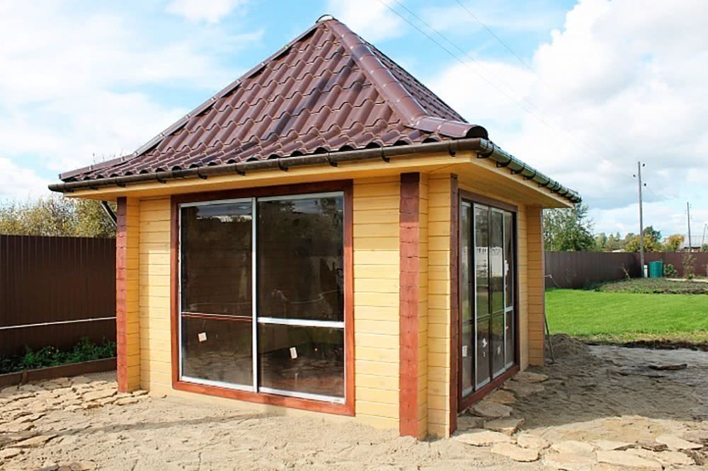 В такой беседке можно соорудить безопасное место для будущего мангала или сделать летнюю кухню.