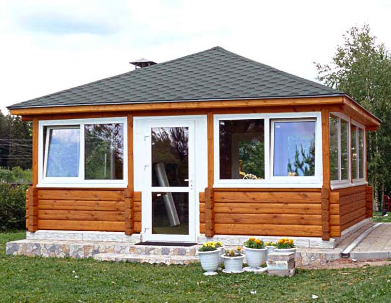 Летняя беседка — далеко не всегда легкая и воздушная постройка с декоративными шторками и легким ландшафтным озеленением. Это вполне может быть капитальный кирпичный домик или массивная конструкция из деревянных бревен.