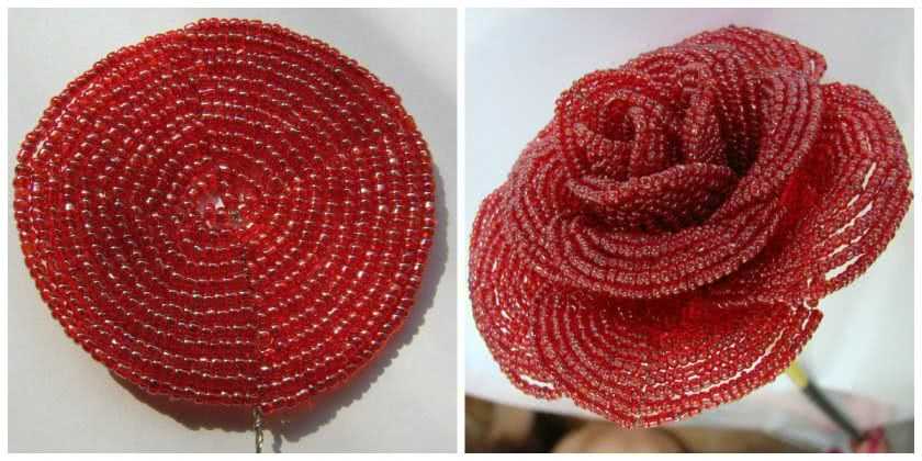 Иначе эту технику называют «круговое плетение», суть ее заключается в постепенном нанизывании бусин вокруг основы. Для более подробного представления, можно взглянуть на схему, которая прикреплена ниже. С помощью этой техники лучше всего получаются лепестки, или листья.