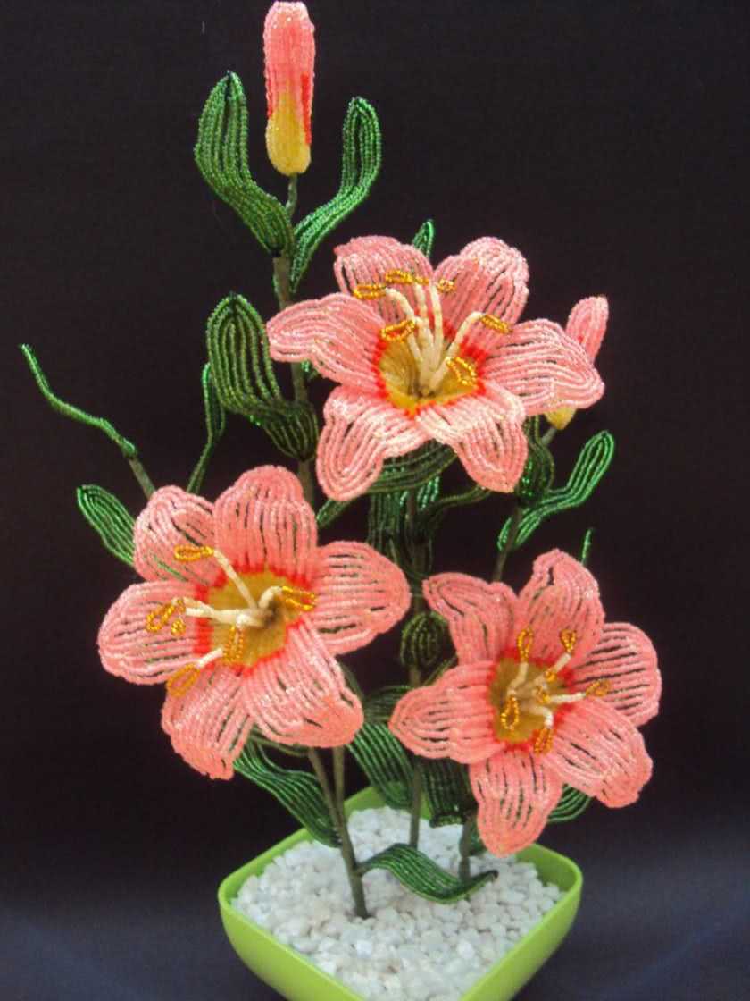 Как выполнить цветы из бисера