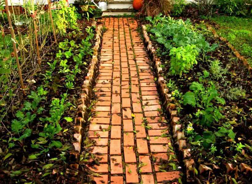 - дорожки из подручных материалов и строительных отходов (от стекла до использованных пластиковых крышек).