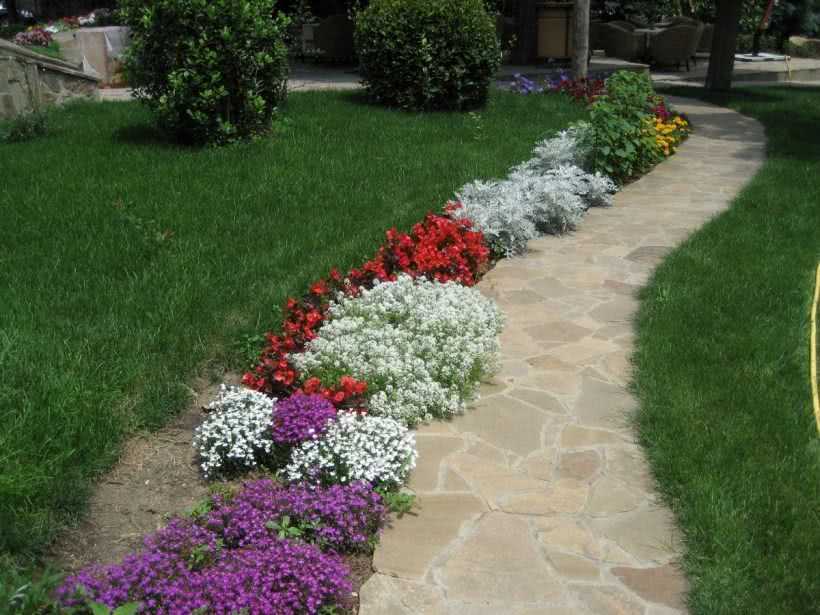 Рабатка – цветы, высаженные широкой длинной полосой. Лучше всего использовать такие клумбы вдоль построек, газонов или садовых дорожек.