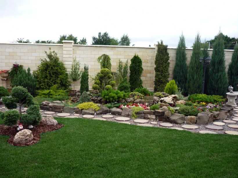 Красивый ландшафтный дизайн вдоль забора с внутренней стороныИсточник dizainexpert.ru