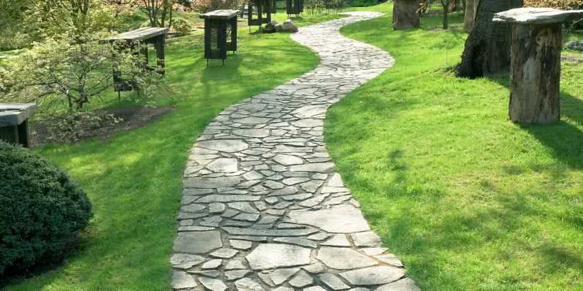 Оригинальный дизайн дорожек можно создать с применением натурального камня