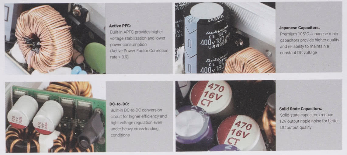 Ряд важных параметров, влияющих на выбор качественного БП, не указывается ни на коробке, ни на сайте производителя. Возможно, только кратко и не детально в виде маркетинговой рекламы – «использование японского конденсатора».