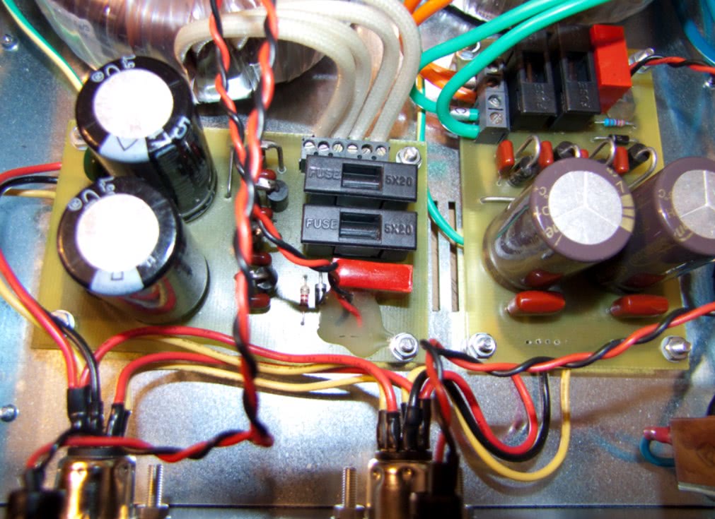 Рис. 9. Плата УНЧ и блока питания к нему в корпусе от предусилителя Радиотехника (фронтальный вид).
