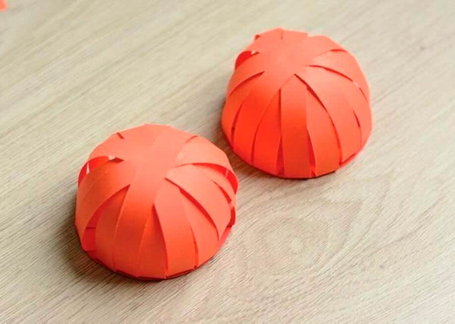 - Красные кружки сгибаем пополам и приклеиваем к туловищу таким образом, чтобы одна из половинок оставалась свободной.