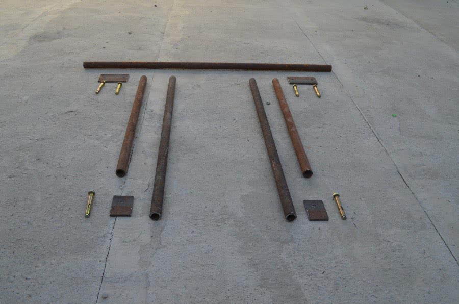 Для создания тренажера потребуется цемент, емкость, мастерок, лопата, сварочный агрегат, строительный уровень, бур на 20 см. Перекладины делают из труб диаметром 40 миллиметров, стойки — из аналогов сечением 60 мм. Во втором случае подойдут заготовки с прямоугольной конфигурацией. Запас по высоте берется порядка 600 миллиметров.