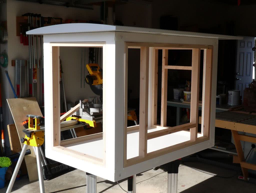 Этот шаг требует осторожности, так как любая ошибка может стоить вам целого проекта. Итак, сначала надо нарезать доски определенного размера, затем сделать боковые стенки, которые должны быть идентичны друг другу. Сборка деталей производится с помощью молотка и гвоздей, однако следите за тем, чтобы гвозди не торчали и загибайте их, так как внутри будки не должно быть острых деталей, которые могут нанести повреждения
