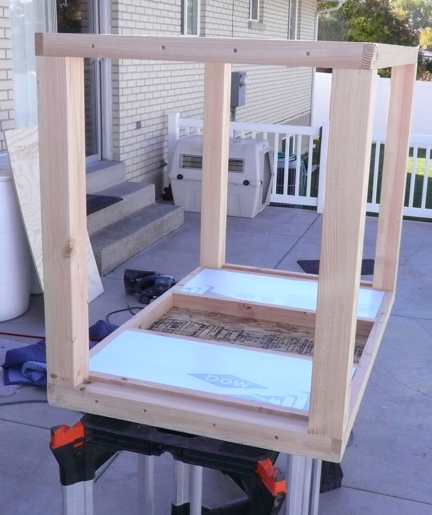 Приподнятый над землей поддон – это средство защитить животное от проникновения снизу холода и влаги. Независимо от того, какую конструкцию собачьей будки вы подобрали, нижняя часть всегда строится по одинаковой схеме. Пошаговый алгоритм сборки выглядит так:
