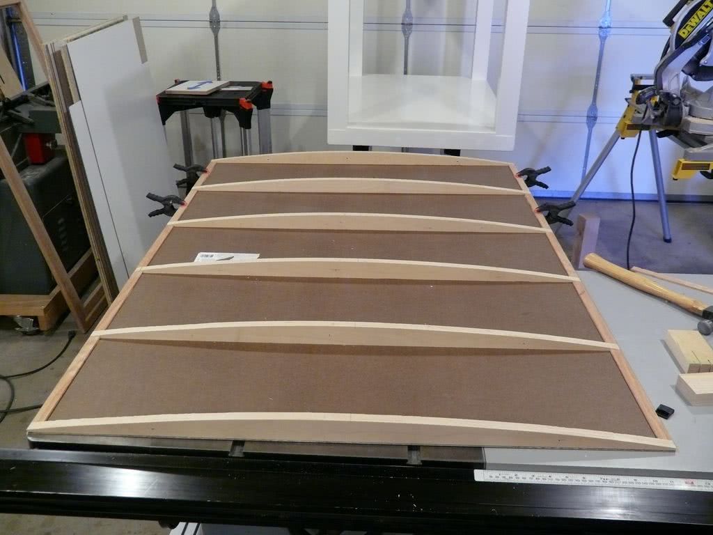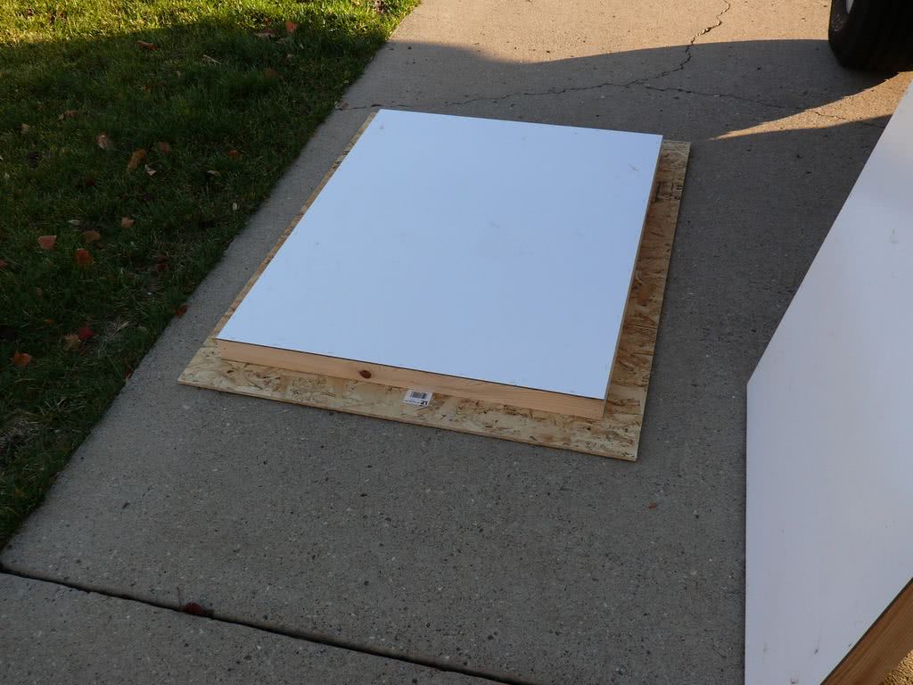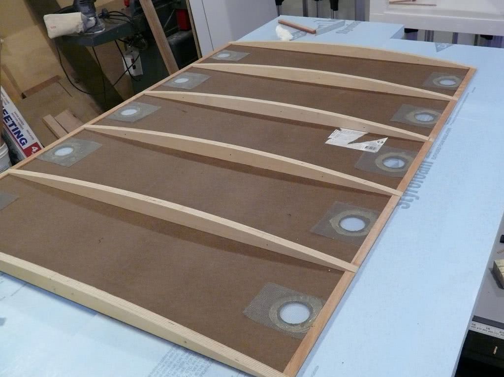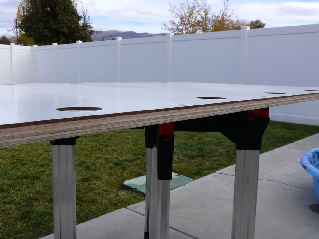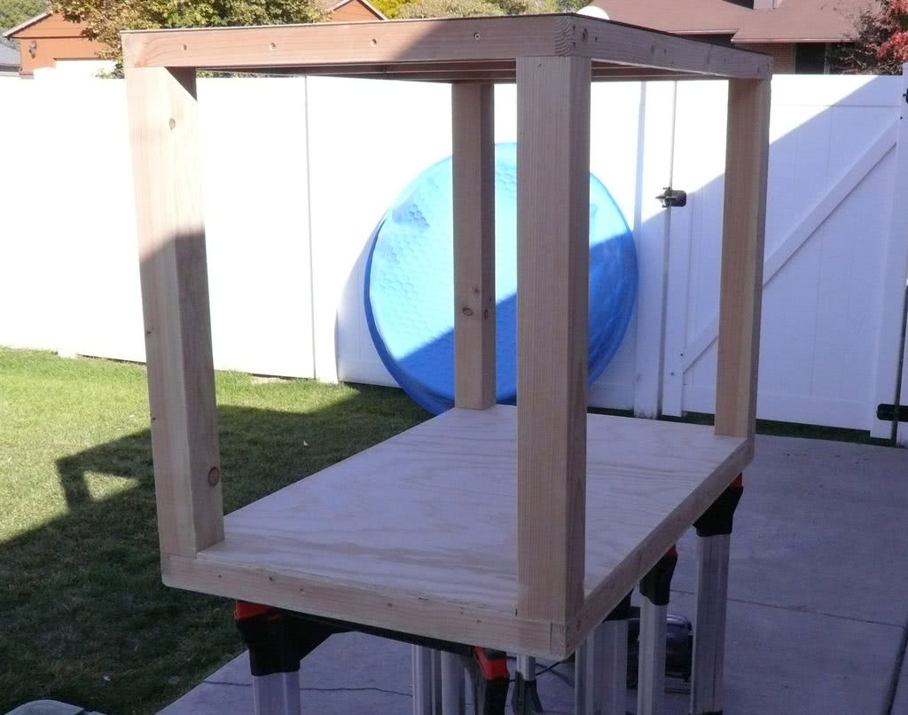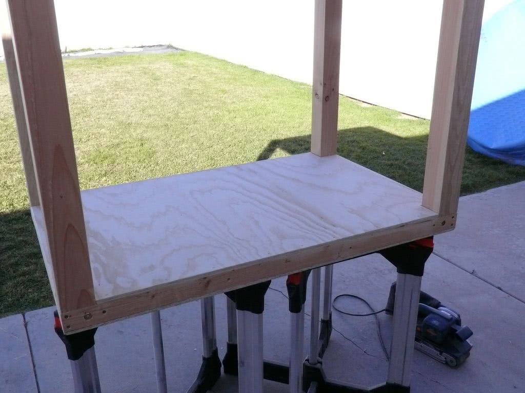 - Прикрутите сверху первый лист толстой фанеры, как это показано на чертеже.