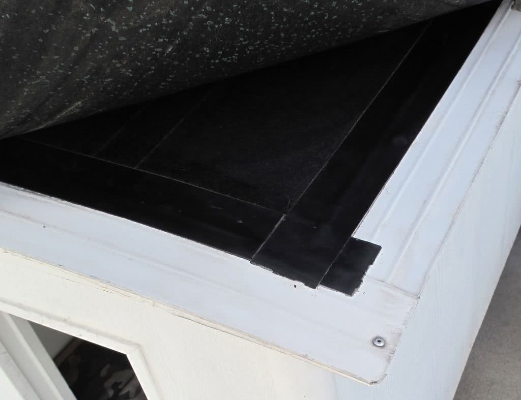 13. ШАГ. Обшиваем торцы крыши будки досками. Поскольку крыша у нашей будки односкатная, то нужно предусмотреть небольшой уклон в сторону задней стенки для стока воды с крыши.