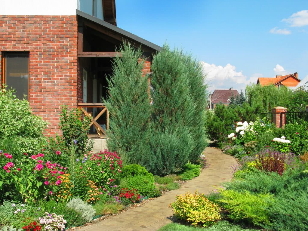 В дизайн сада неплохо вписываются различные виды хвойных. Популярностью пользуются различные виды можжевельника: