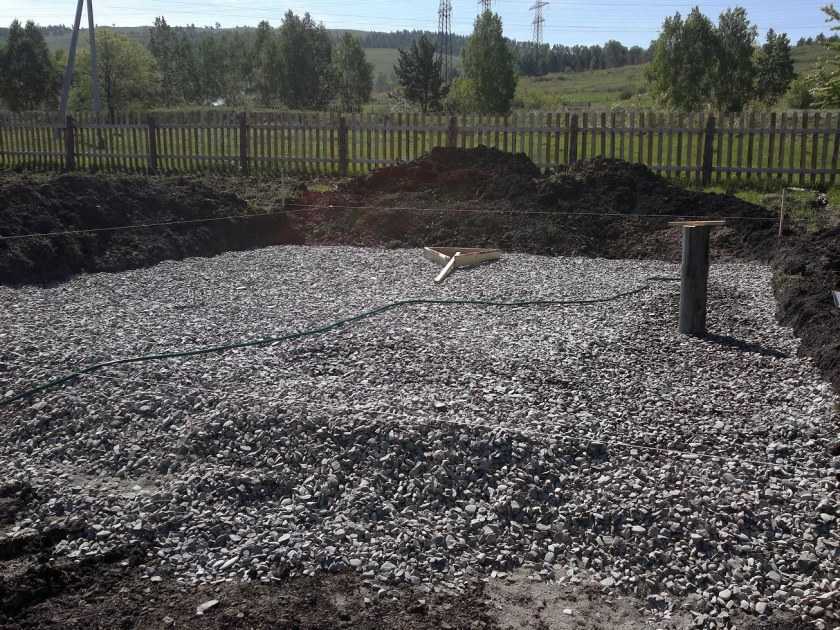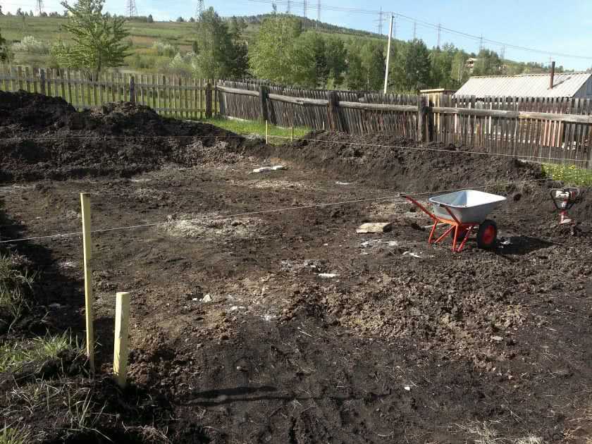 - По углам участка и в местах предполагаемого размещения опор (обычно их достаточно 6-8 штук) снимается верхний слой почвы.