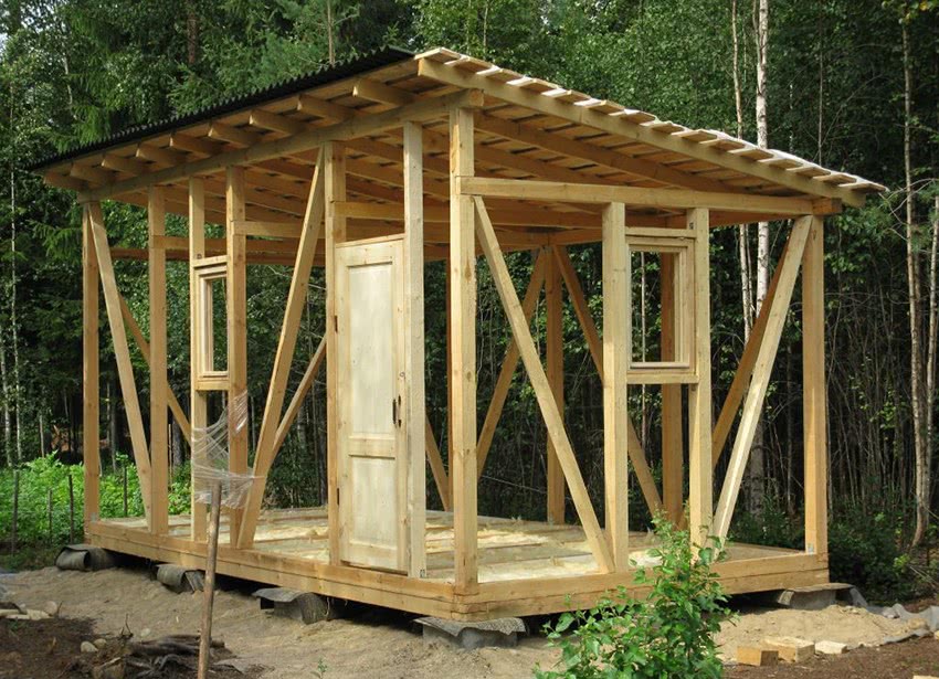 Самостоятельные застройщики также предпочитают возводить каркасные бытовки — они проще в изготовлении своими руками, а выбор материалов, особенно для обшивки, ограничивается только бюджетом строительства.
