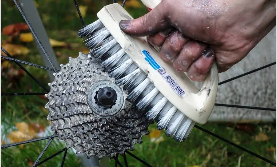 По поводу щеток сказать особо нечего – выбираете любую подходящую и вычищаете с ее помощью грязь из каждого звена, а также передних и задних звездочек.