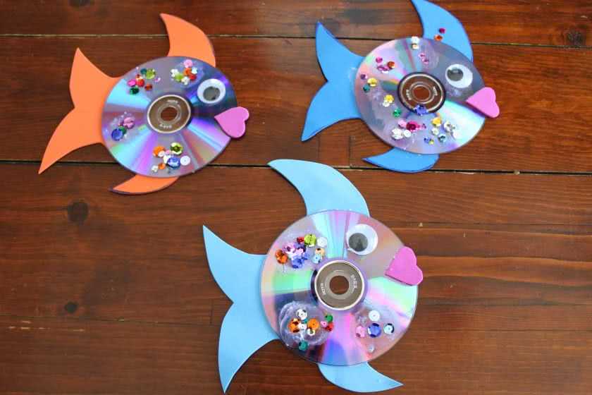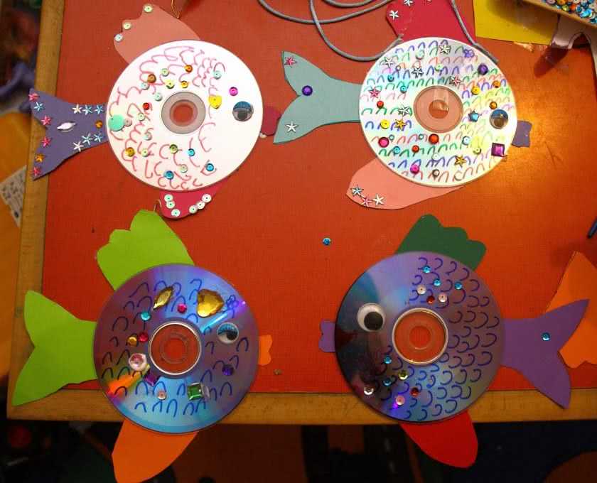 Из дисков можно изготавливать различных животных, таких как рыба, черепаха и другие.