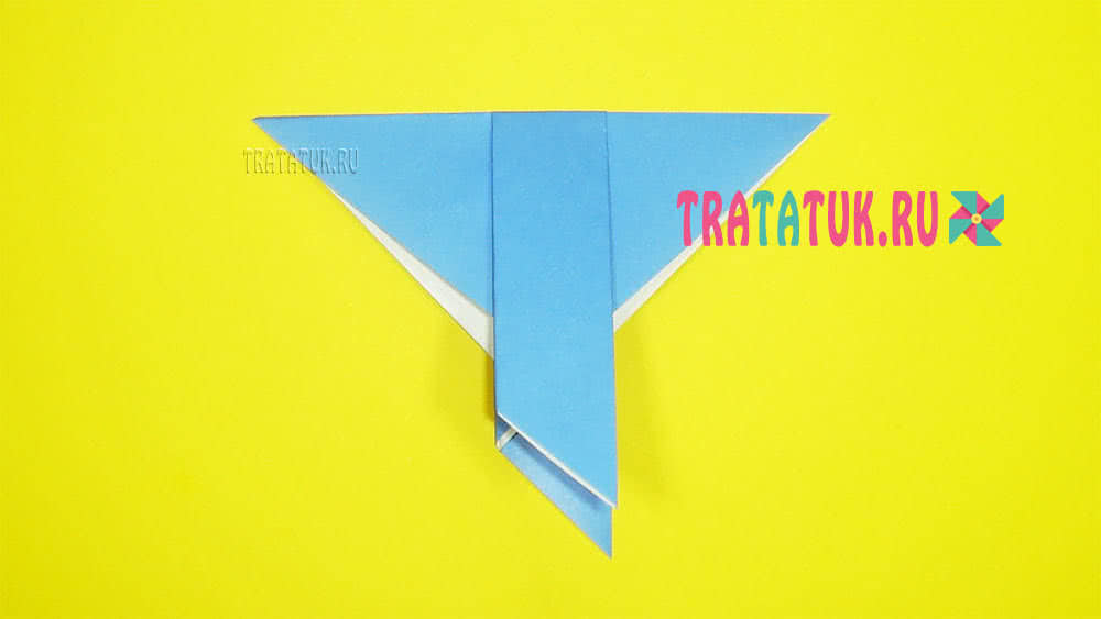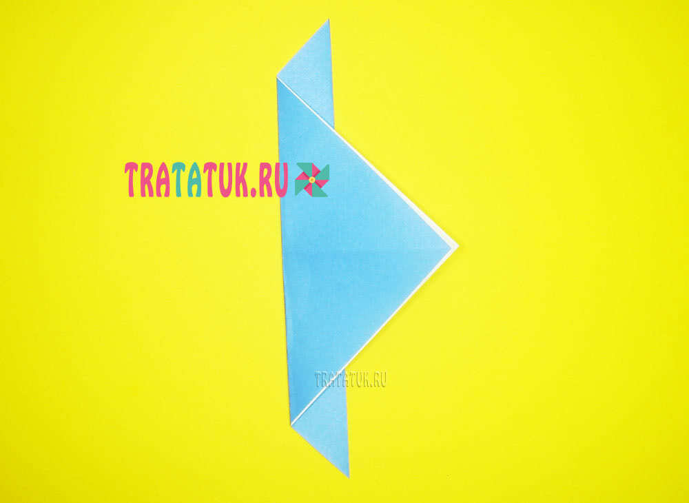 - Бока ведём книзу, но делаем это с разных сторон заготовки. Снизу поддеваем пальцем центр фигурки, немного раскрываем её и прижимаем сверху, у вас должен снова получиться треугольник.