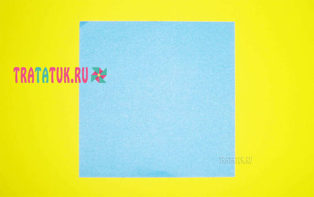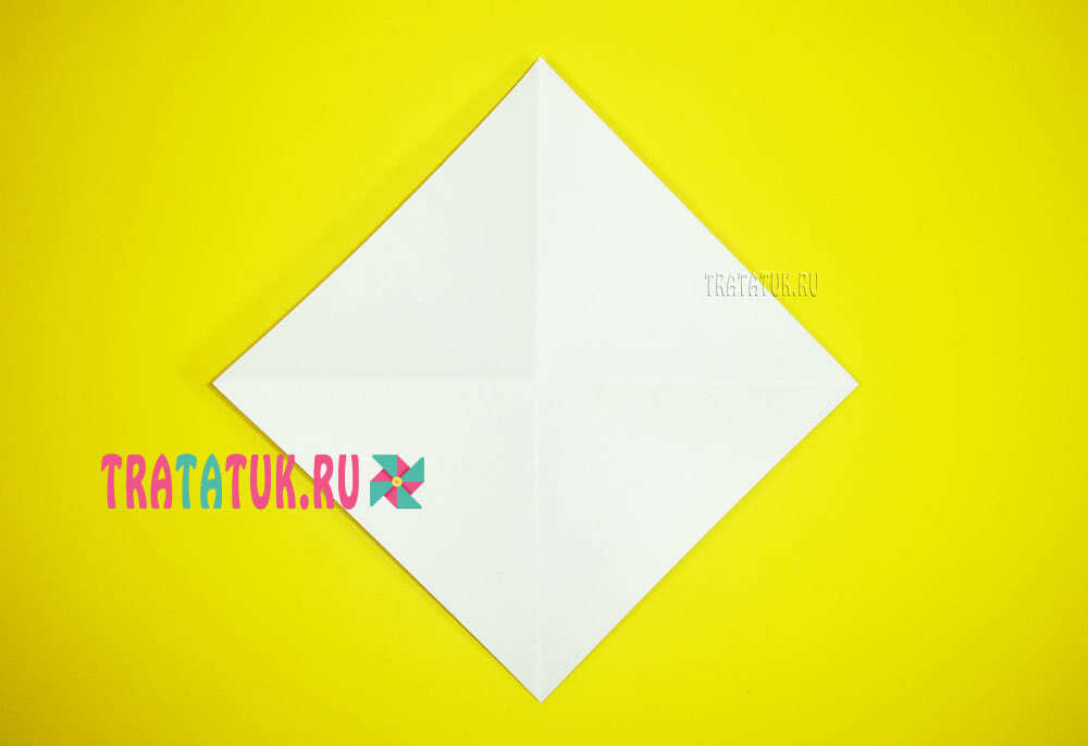 Теперь переворачиваем на обратную сторону, таким же образом сгибаем там. Получился квадрат.