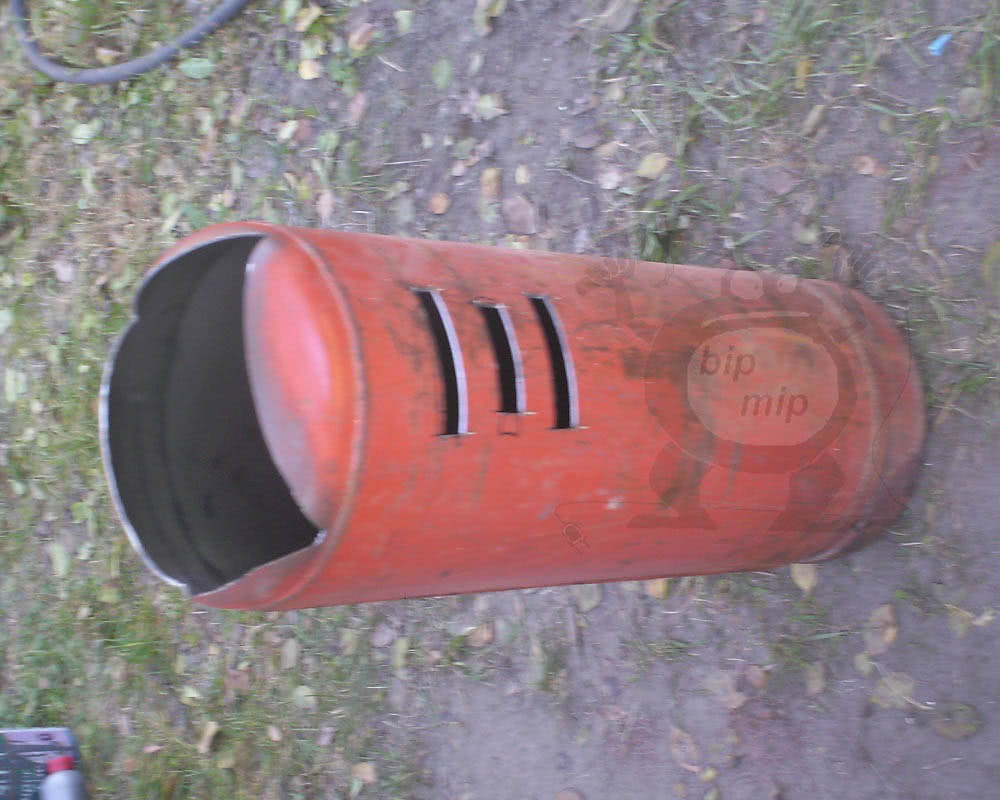 - Старый газовый баллон. Это основа для пиролизной печки. Также на эту роль подойдет стальная или чугунная бочка объемом примерно 200 л, имеющая прочные стенки без ржавчины. Нередко для этого используются большие огнетушители или металлические трубы с заваренным дном.