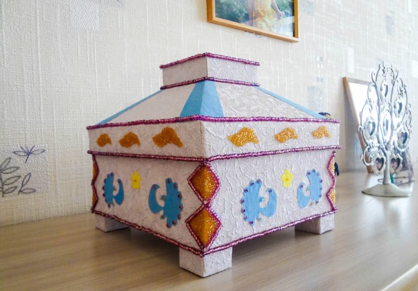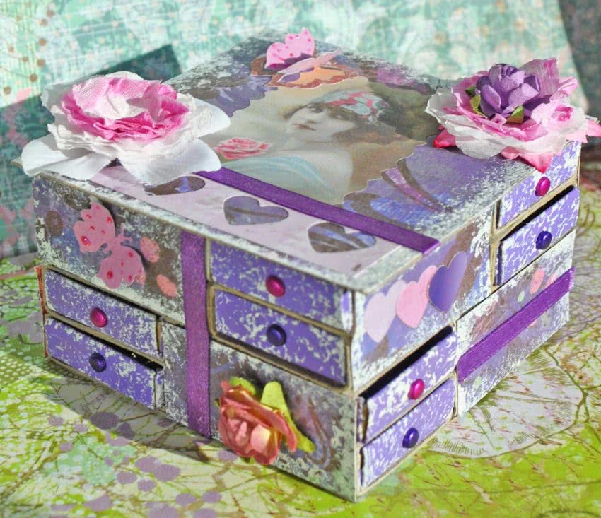 Раз уж мы рассматриваем поделки из коробок своими руками, то разумнее всего начать из практически полезных вариантов, а именно шкатулок, в которых можно хранить различные мелочи.