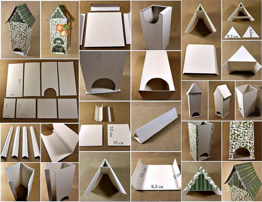 Важно знать, что поделки из коробок из под сока, подходят не только в исполнении кормушек. Из них можно делать и домики для маленьких пупсов. Достаточно лишь аккуратно обклеить будущий домик красивой бумагой, вырезать окошки и дверцу
