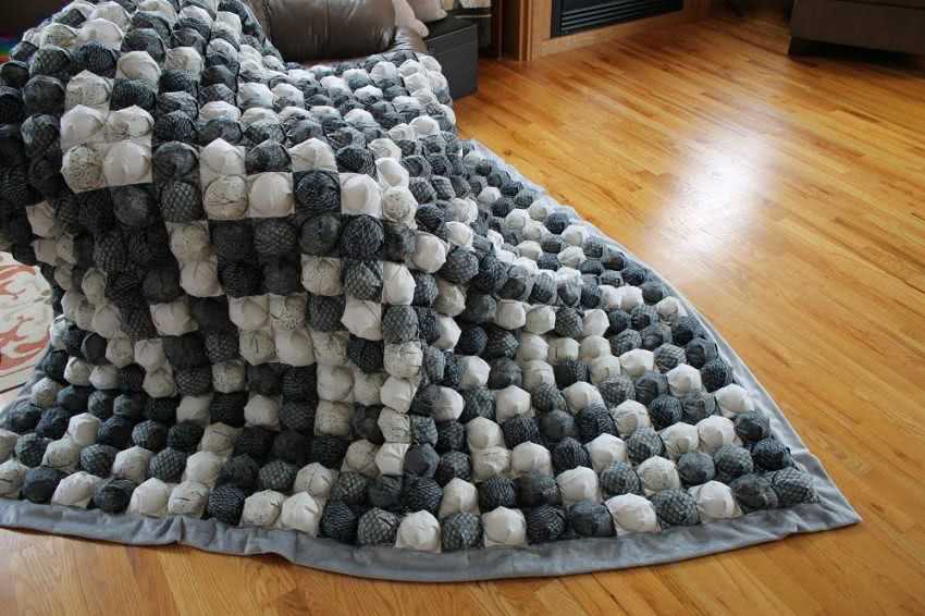 Дело в том, что получается отличная комбинация с вельветом, флисом, вискозой. В итоге получится интересный плед из разноцветных лоскутков.