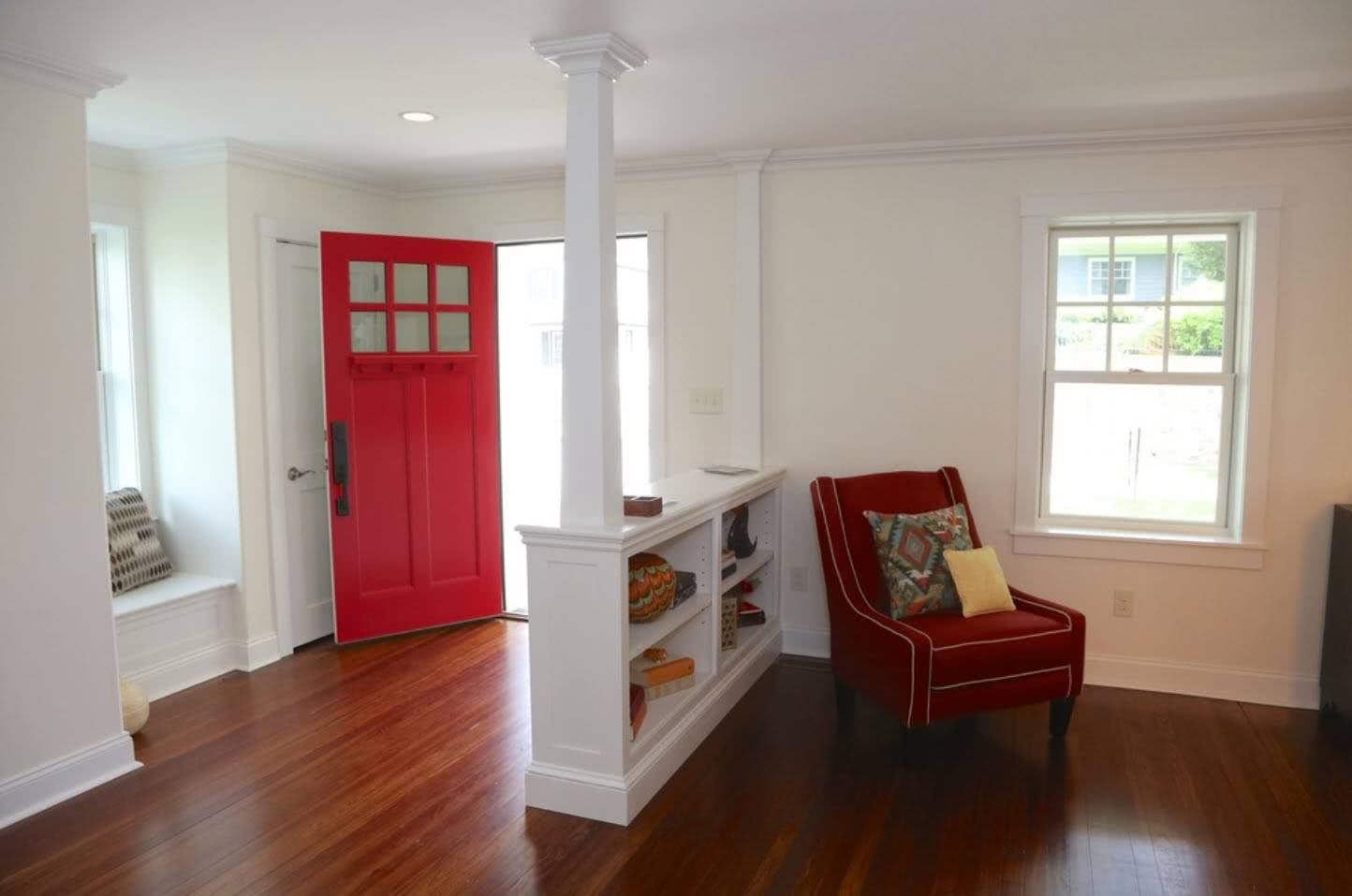 Перегородка – не стена, ее можно и передвинуть. Если в микро-прихожей есть ненесущая стена, разделяющая коридор и комнату, часть ее можно снести, а в образовавшийся проем встроить шкаф или устроить нишу. Такое расширение оправдано, если коридор непропорционально мал по сравнению с другими помещениями.