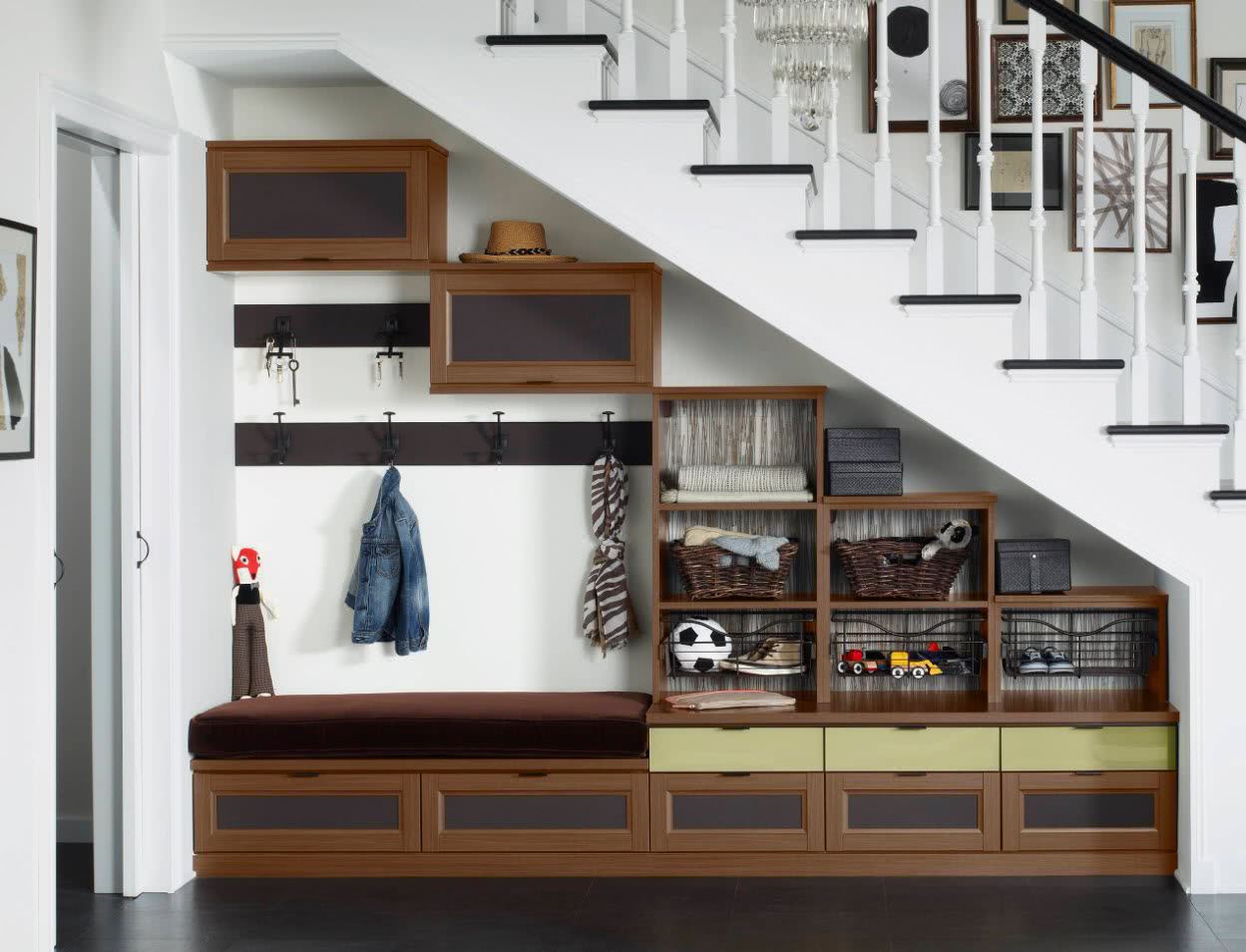Красивая прихожая — это упорядоченная комната. Обувь, шляпы, одежда должны иметь строго назначенное место в пространстве коридора. Стоит помнить, что прихожая не должна использоваться для круглогодичного хранения одежды, а служит только раздевалкой в соответствии с текущим временем года. Следовательно, в летний сезон убедитесь, что в коридоре вам нужно найти место для сезонной одежды и обуви, перемещая теплые куртки и высокие сапоги, которые не используются, в пространство чердака, подвала или кладовой.