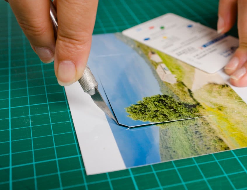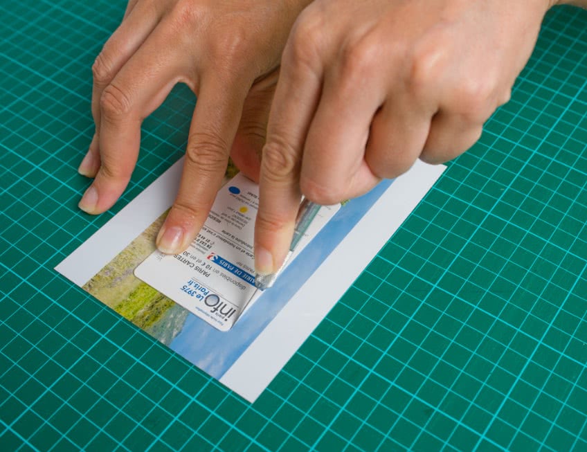 Для начала подготовим фотографии. Можно изначально распечатать их в необходимом размере. В этом примере возьмем фотографии и обрежем их до размера визитки.