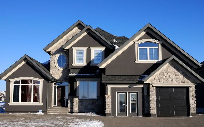 Чаще современные фасады имеют тёплый оттенок. Многие домовладельцы выбирают для декора бежевый, коричневый, жёлтый и красный цвет.