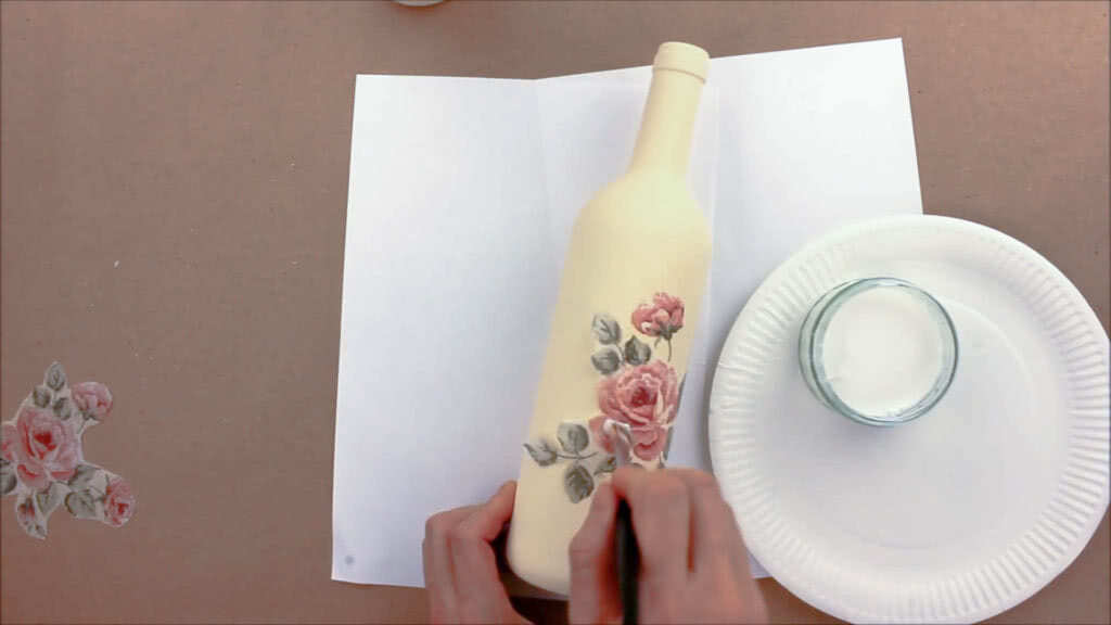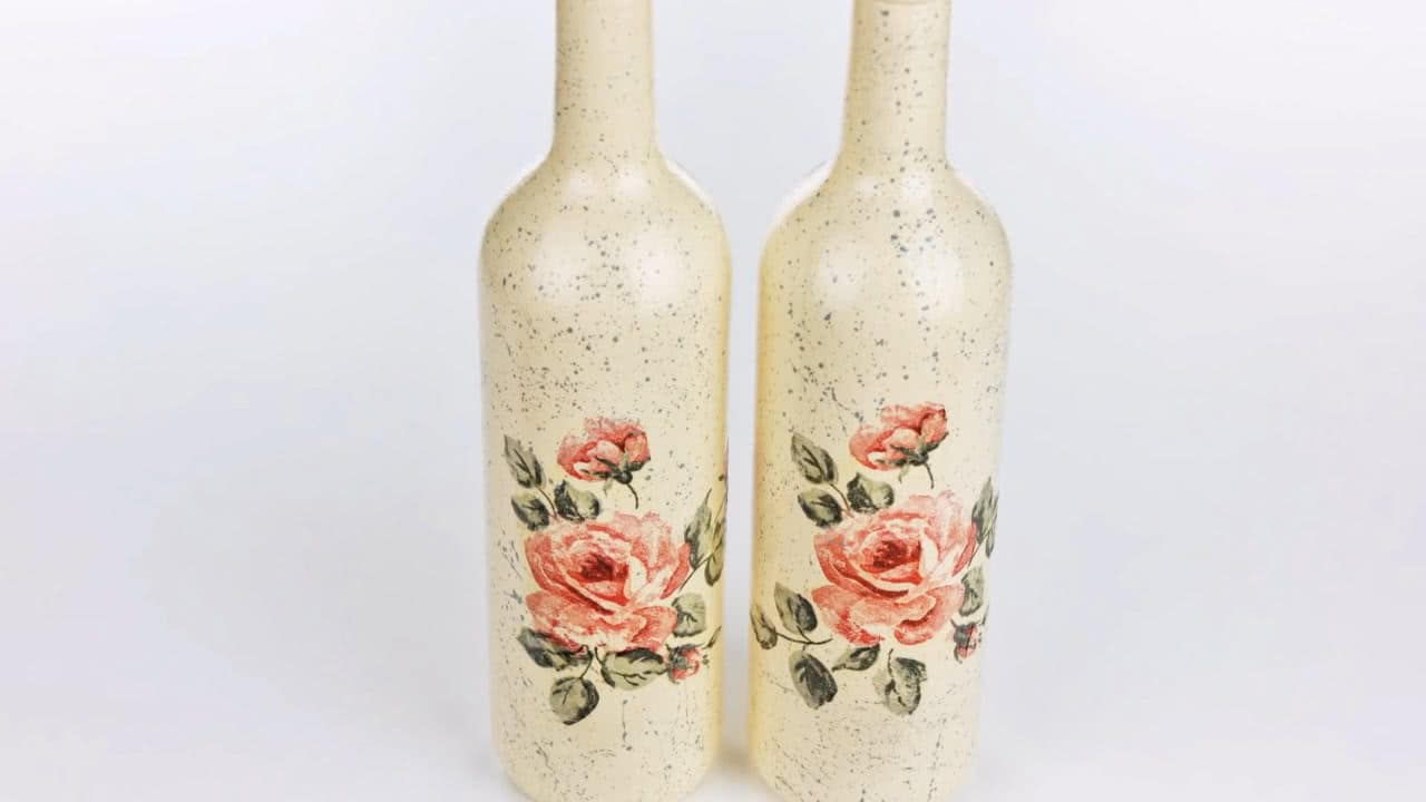 В этом уроке я применяю обычный прозрачный акриловый лак. Но также можно сделать декупаж бутылок салфетками своими руками с кракелюром, чтобы придать поделке состаренный вид. Этот лак создает эффект треснутой от старости краски.
