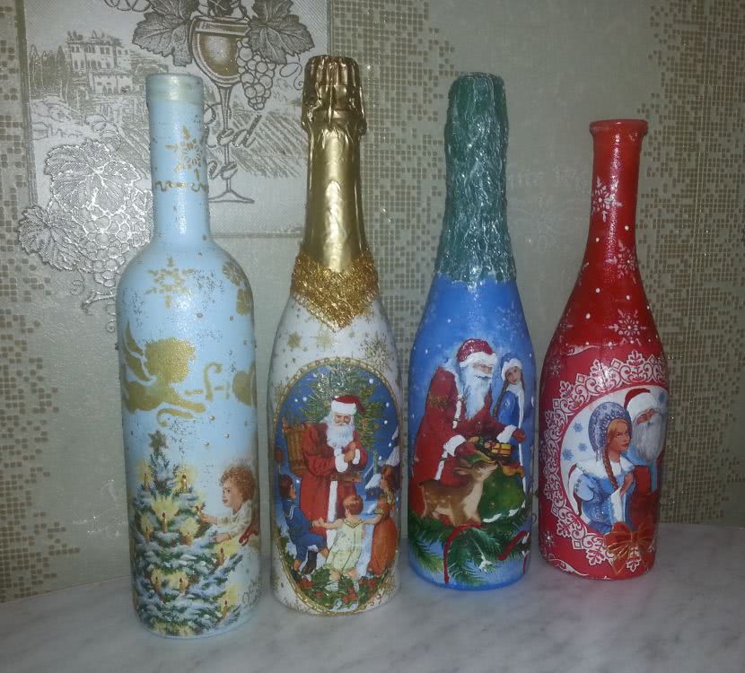 Применив технику декупажа, несложно порадовать себя или своих близких оригинально оформленными бутылками коньяка, вина или шампанского на любой праздник