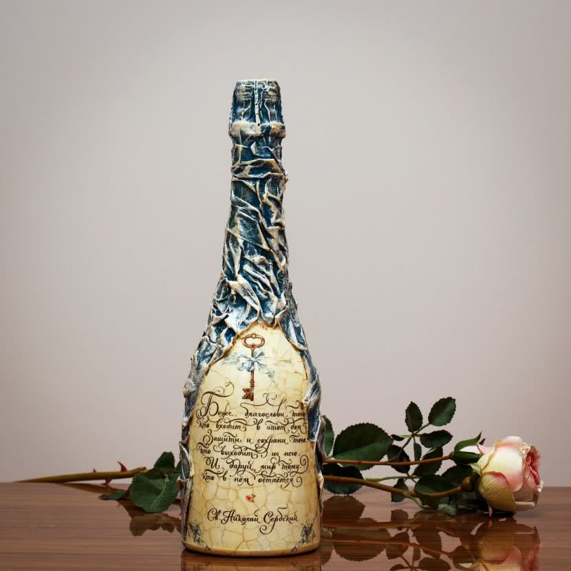 Для тех, кто уже знаком с декупажной техникой обработки стеклянных бутылок, можно приобрести: