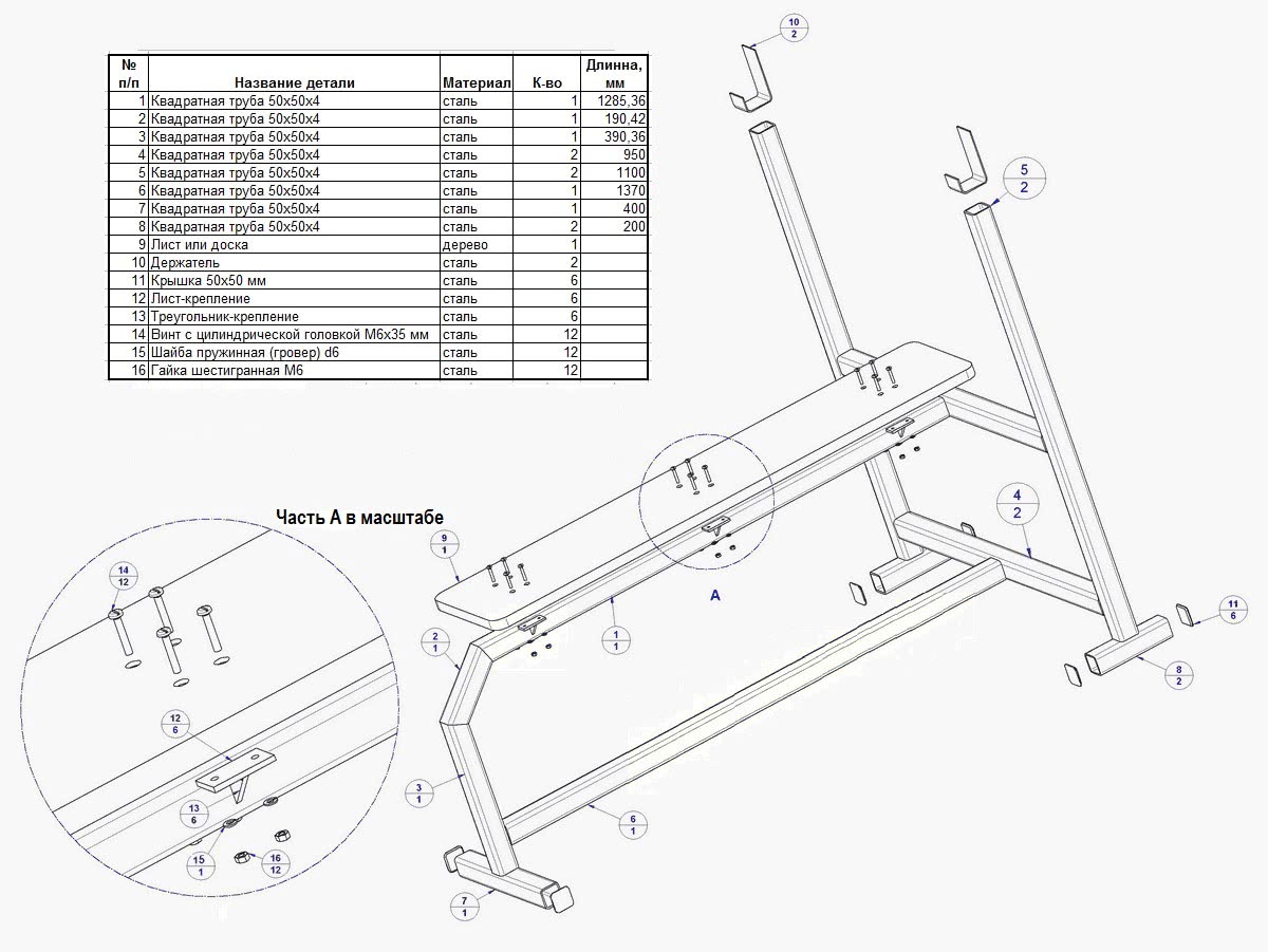 Самодельная конструкция не считается самой безопасной, однако обойдется гораздо дешевле готовой. Чтобы скамья получилась надежной и прочной, необходимо использовать качественные материалы: