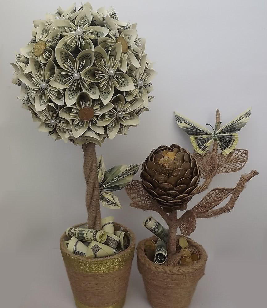 Как сделать топиарий из монет своими руками: пошаговое фото