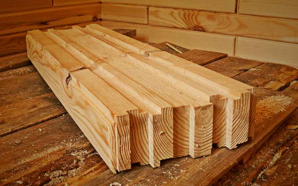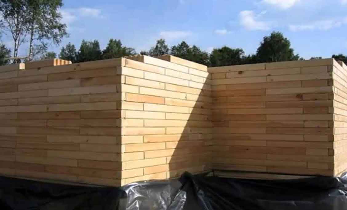 Есть варианты, имеющие такие же, как у кирпича гладкие грани, которые используют больше для облицовки стен или выкладки межкомнатных перегородок. Для возведения несущих стен, используют блоки с пазогребневым соединением – таким же, как у строительного клееного бруса. Применяемая ныне технология, предусматривает термическую сушку древесины, после которой её влажность не превышает 12%.