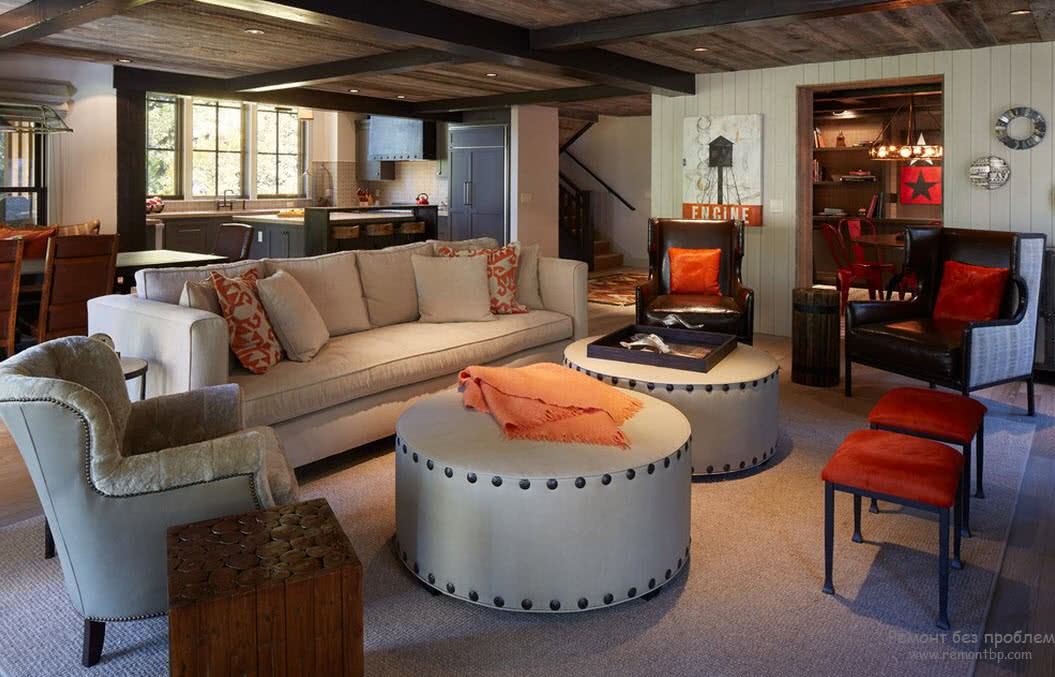 Когда декорируете интерьер в стиле кантри, стоит выбрать мебель из дерева или плетеные предметы. Кованые элементы также будут хорошо скомпонованы. Камин является неотъемлемым элементом такого устройства.