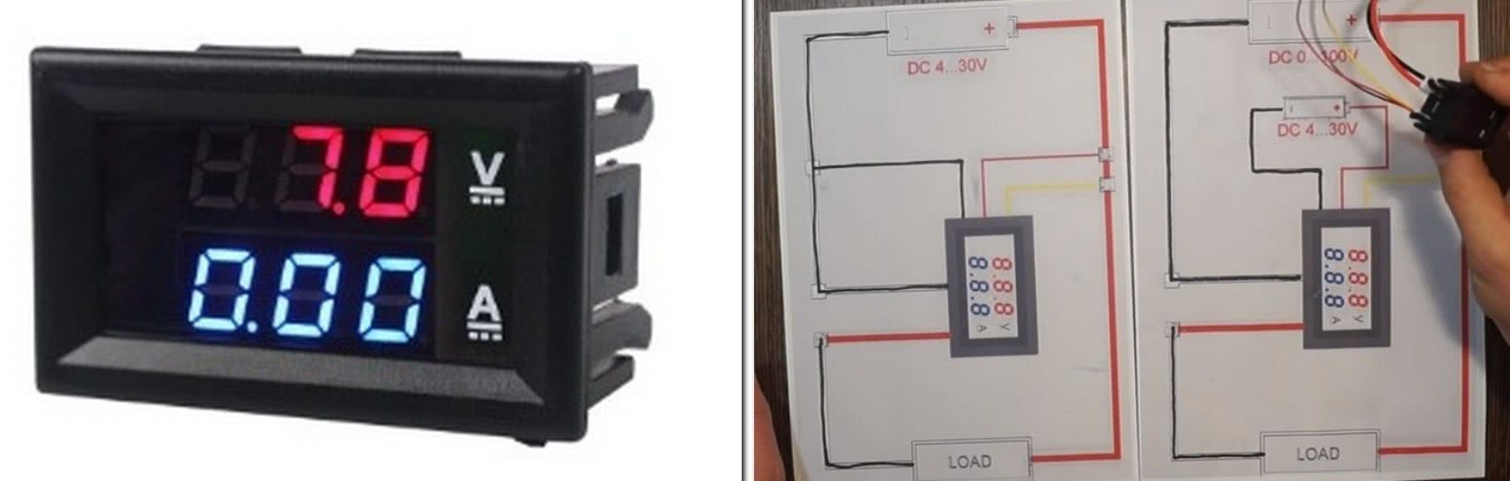 А вообще — зря ты купил именно такой, без корпуса По той же цене — до 150 рупий — есть вольтметры уже установленные в пластиковом корпусе, дырку сделал, воткнул — и все, а в этом какую то «маску» городить надо и платка сопливенькая — чуть перетянул крепеж и пипец ))) А подключать его — да, надо в цепь, идущую напрямую к аккуму, местное падение напряжения в цепи потребителя ни кто не отменял А по проводам — ну стандартно, наверное : черный » — «, красный » + « белый — на питание самого вольтметра