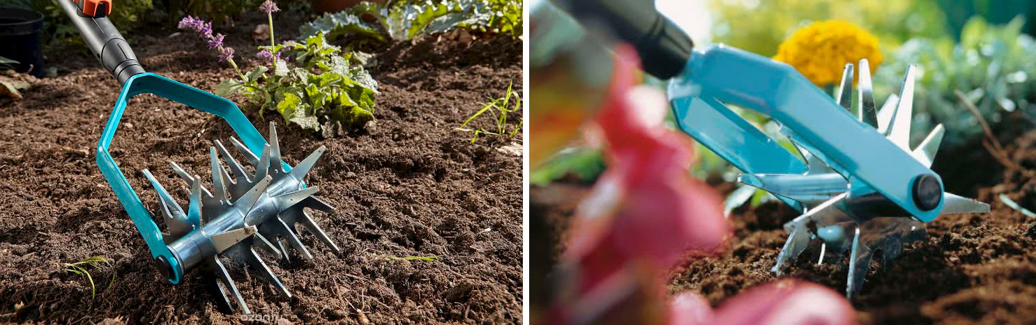 С помощью данного приспособления можно не только разрыхлить землю, но и удалить сорняки, а также вносить удобрения. Пригодится инструмент и в процессе ухода уже после посадки растений, с их помощью можно выполнять такие действия: