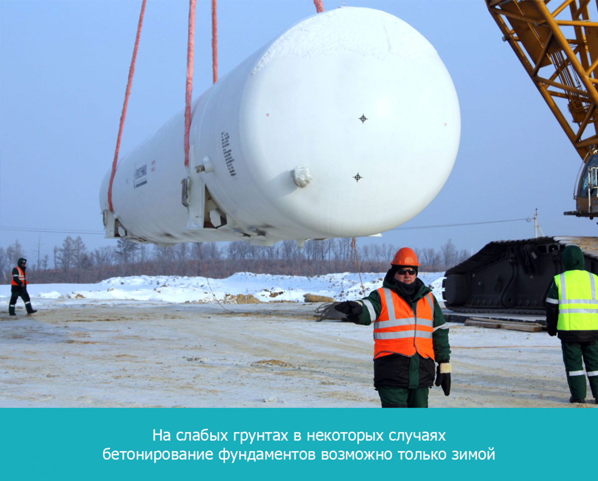 - на слабых грунтах в некоторых случаях бетонирование фундаментов возможно только зимой;
